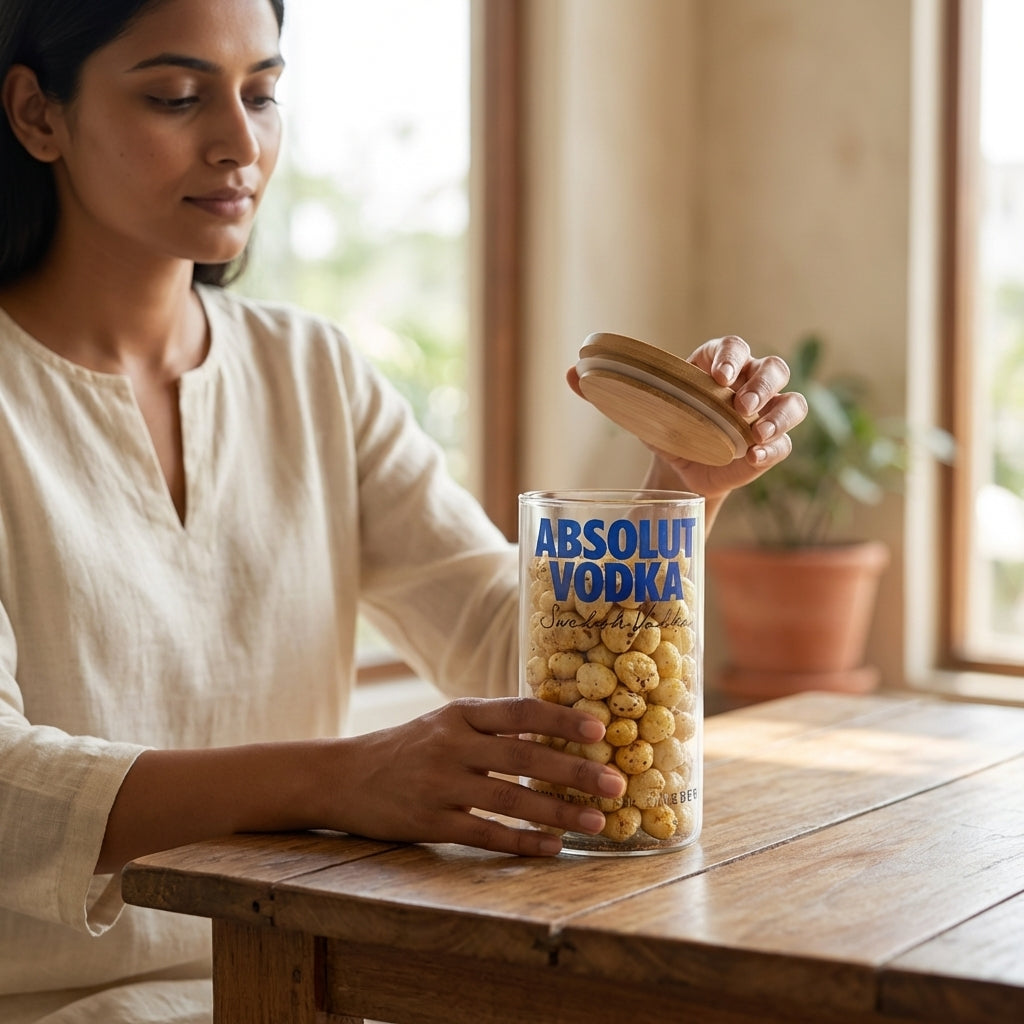 Presentamos los frascos Absolut Bottle con tapa de madera: ¡el complemento perfecto para tu cocina! Con una capacidad de 600 ml, estas botellas de vidrio vienen en el icónico color Absolut Bottle y son herméticas. ¡Consíguelas ya y mejora tu almacenamiento de alimentos!